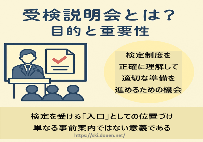 スキー指導員・準指導員・認定指導員の資格取得を目指すうえで、**最初に関わることになるのが「受検説明会」**です。